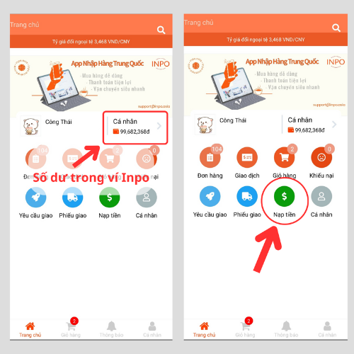 - Kiểm tra số dư trong ví Inpo của quý khách