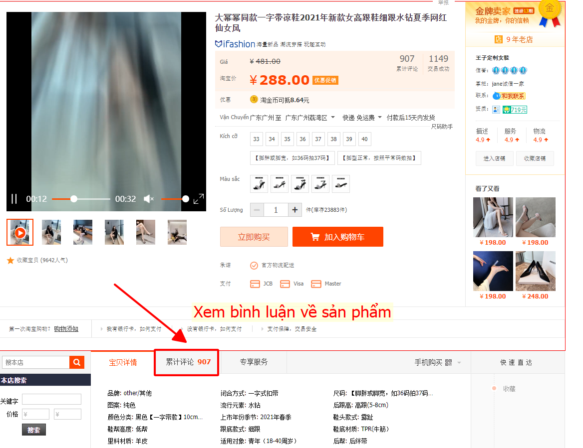 Vì vậy, trước khi bấm “đặt hàng”, hãy dành vài phút xem kỹ điểm đánh giá (店铺评分) – đây là thước đo uy tín tổng thể của người bán.