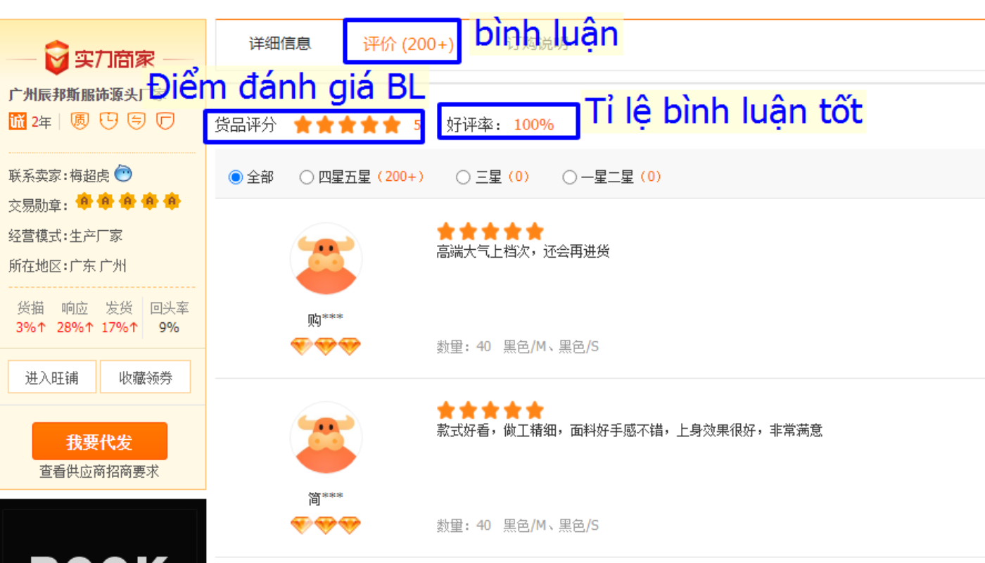 Luôn xem xếp hạng uy tín (trái tim, vương miện, kim cương) của shop.