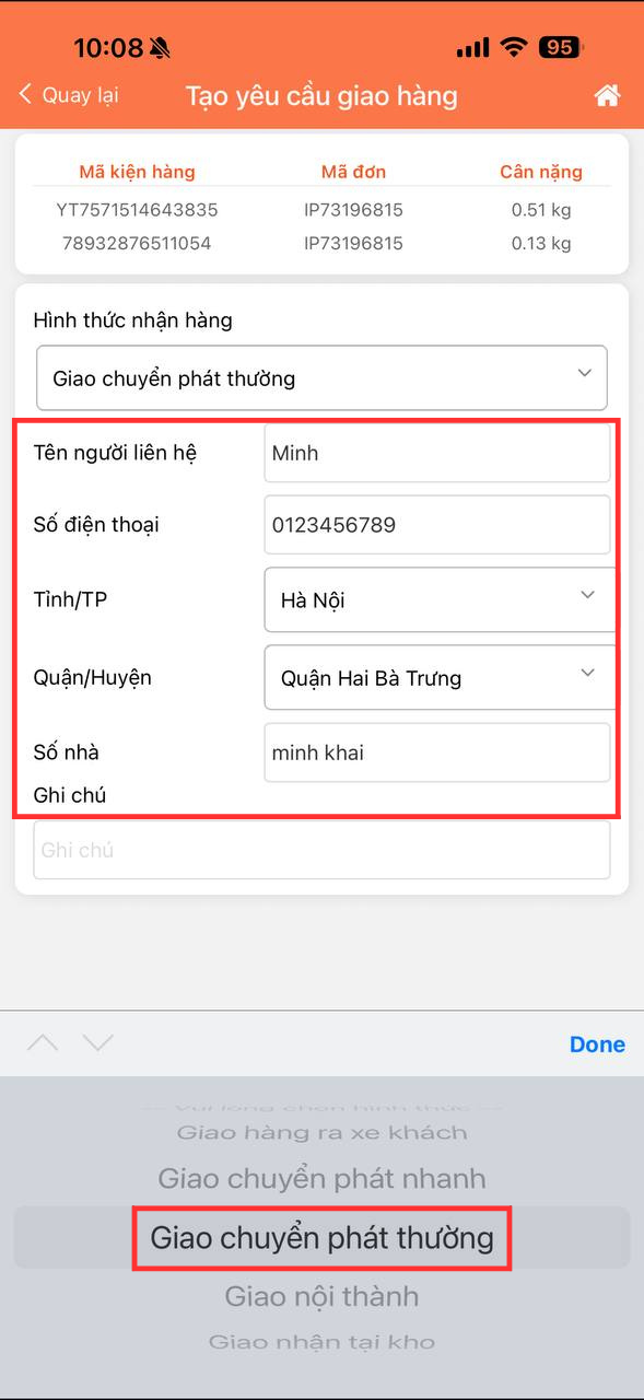 Bạn vẫn phải tạo yêu cầu giao hàng trước → gửi mã phiếu giao cho ship