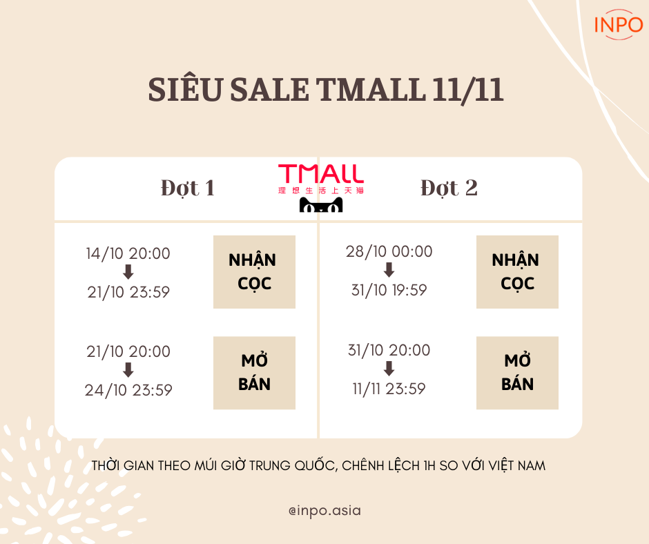 - Khuyến mãi 11.11 thường bắt đầu từ trước nửa tháng, do đó bạn cần theo dõi trang khuyến mãi của các sàn TMĐT như Tmall và Taobao để không bỏ lỡ cơ hội mua hàng với giá tốt.