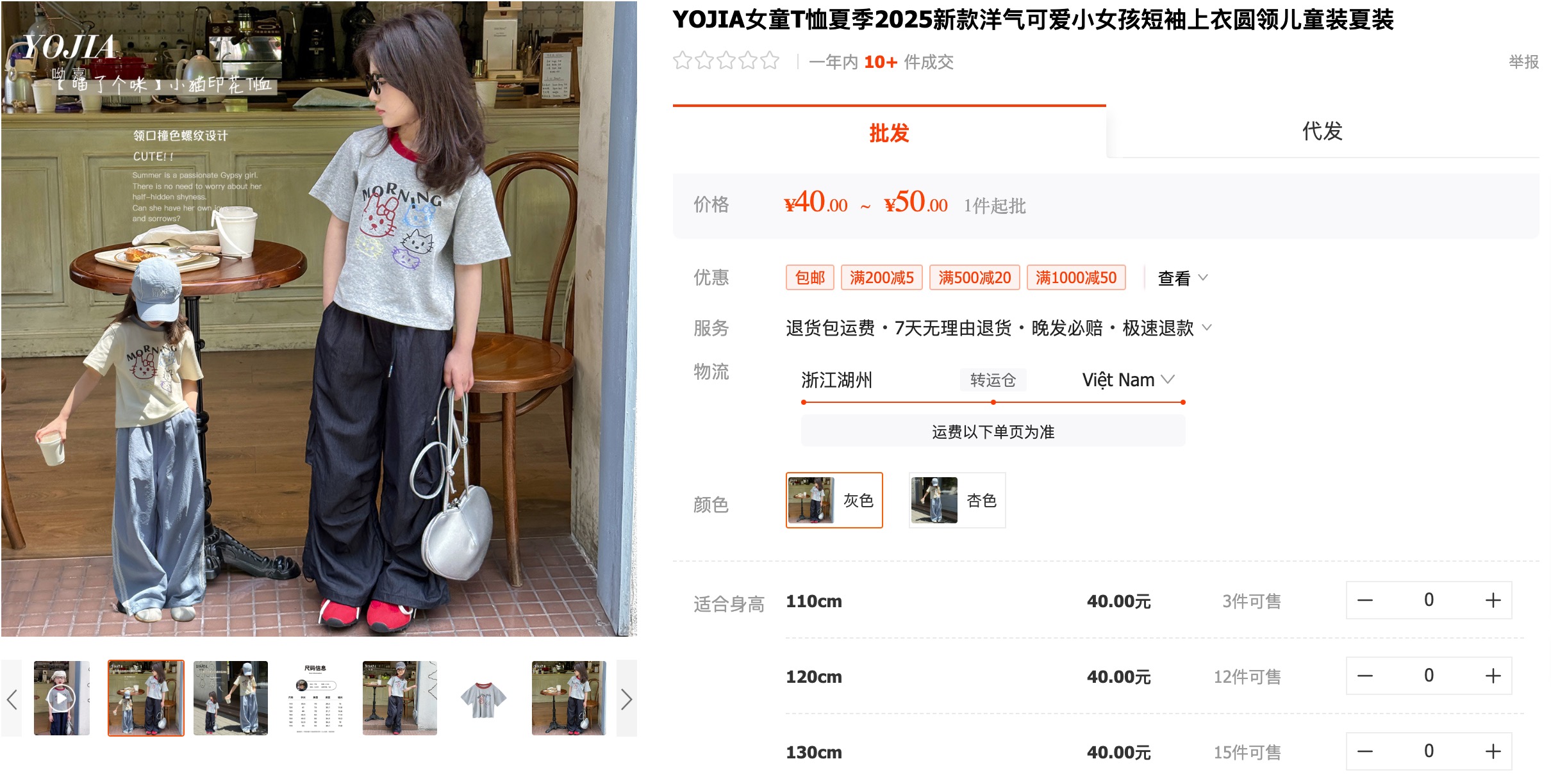 Nếu bạn cần nhập thử mẫu, số lượng ít hoặc cần sản phẩm chất lượng cao hơn, Taobao và Tmall là lựa chọn phù hợp. Hai nền tảng này cung cấp hàng trăm mẫu mã thời trang trẻ em bắt mắt, hình ảnh rõ nét, dễ lựa chọn. Tmall đặc biệt uy tín vì kiểm duyệt khắt khe và có thương hiệu lớn tham gia.