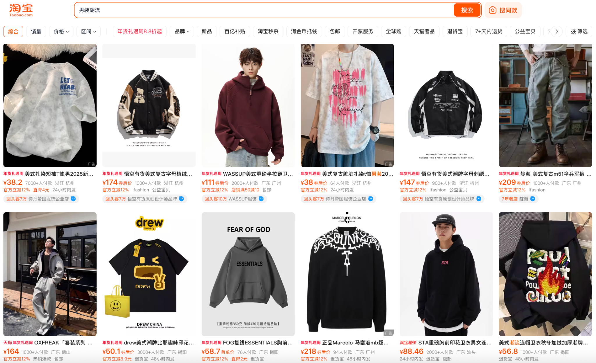 Tìm kiếm từ khóa “hàng mới”, “bán chạy” trên 1688, Taobao
